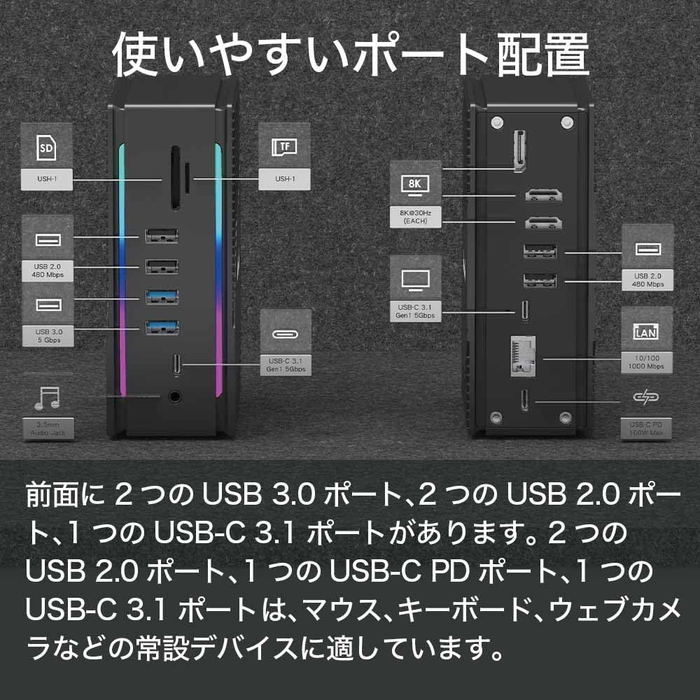最大 8K@30Hz HDMI 映像出力:高解像度ディスプレイにも対応し滑らかな表示。