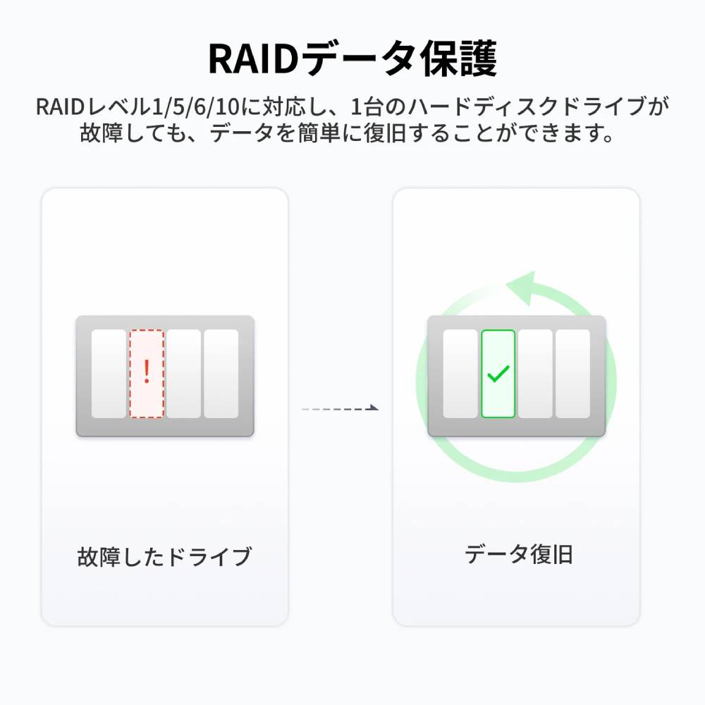 RAID0/1/5/6/10 をサポートし、静音ながら高速アクセスを実現。